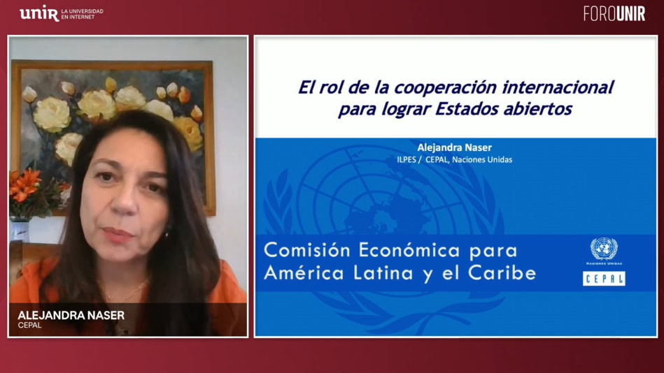 En el foro, presentado y moderado por el director de Foro UNIR, Jorge Heili, participaron Lola Arranz Madrid, vicedecana de la Facultad de Derecho de UNIR; Alejandra Naser, especialista del Área de Gestión Pública y Gobierno Abierto de CEPAL; José Luis Ros Medina, director académico del Máster Universitario en Administración Electrónica y Gobierno Abierto de UNIR; Rosario Pavese, líder de Américas en Open Government Partnership; y Ester Kaufman, presidenta de la Red Académica de Gobierno Abierto Internacional (RAGA).