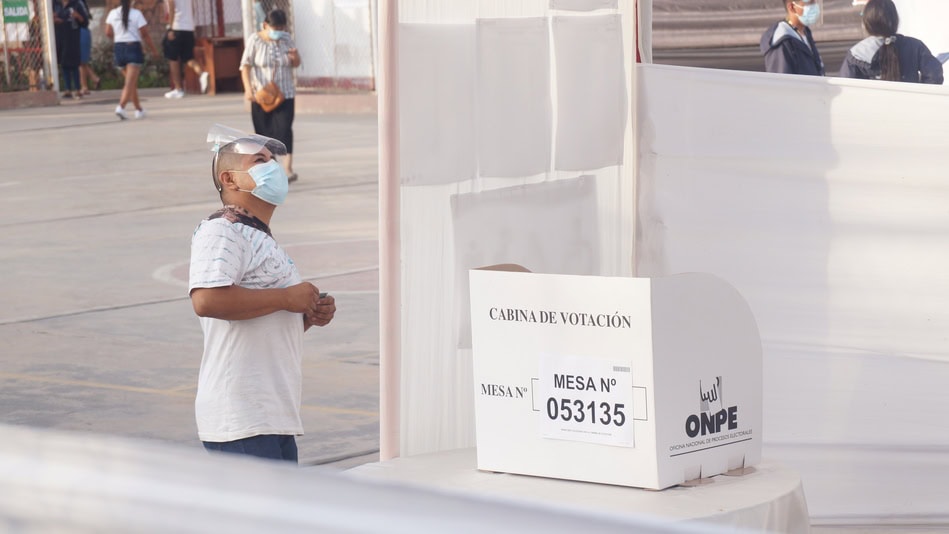 Imagen de un colegio electoral durante las elecciones generales de abril de 2021 en Perú.