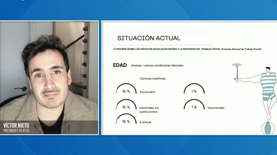 A partir de los datos del Consejo General del Trabajo Social, Nieto dibujó una fotografía del mercado laboral actual: precariedad en los perfiles más jóvenes, fuerte presencia del empleo público y una sensación generalizada de falta de desarrollo profesional. Frente a este escenario, el ejercicio libre aparece como una vía para recuperar autonomía, creatividad y proyección.